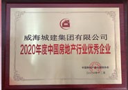 成果名稱:2020中國房地產行業優秀企業,獲獎單位:威海城建集團有限公司,頒發單位:中國房地產行業管理協會