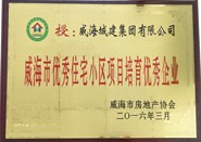 獲獎名稱:威海市優秀住宅小區項目培育優秀企業 獲獎單位:威海城建集團有限公司 授獎單位:威海市房地產協會