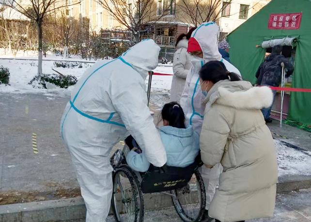 漫天風雪,氣溫低至零下,依然擋不住廣大志愿者抗疫的腳步。11月30日以來,集團黨員干部職工全力以赴投身在抗疫第一線,在抗疫戰場上“連軸轉”。有的干部職工雖然不是黨員,卻在關鍵時刻沖鋒陷陣,第一時間到社區報到,支援抗疫工作。有的黨員從12月1日晚上8點就開始在社區卡口執勤,一直干到次日凌晨1點,寒風刺骨卻無怨無悔。有的黨員老公在單位值守,自己一個人在家照顧孩子,為了支援社區疫情防控,早上5點就把孩子叫醒讓對門鄰居幫忙照看,義