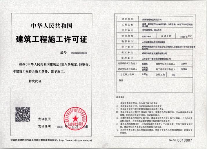 建設單位:威海城建集團有限公司 負責人:吳曉東