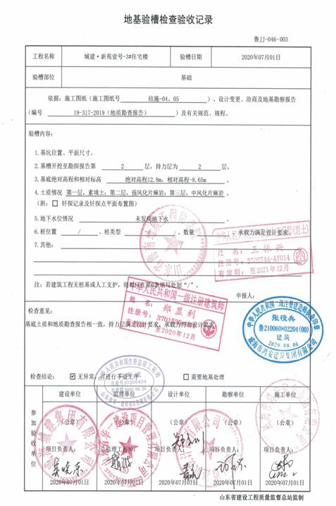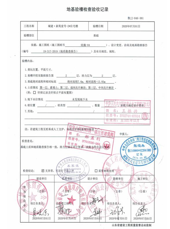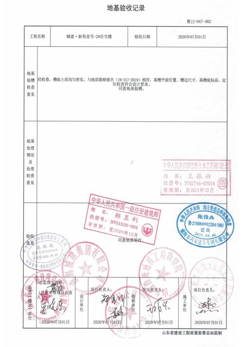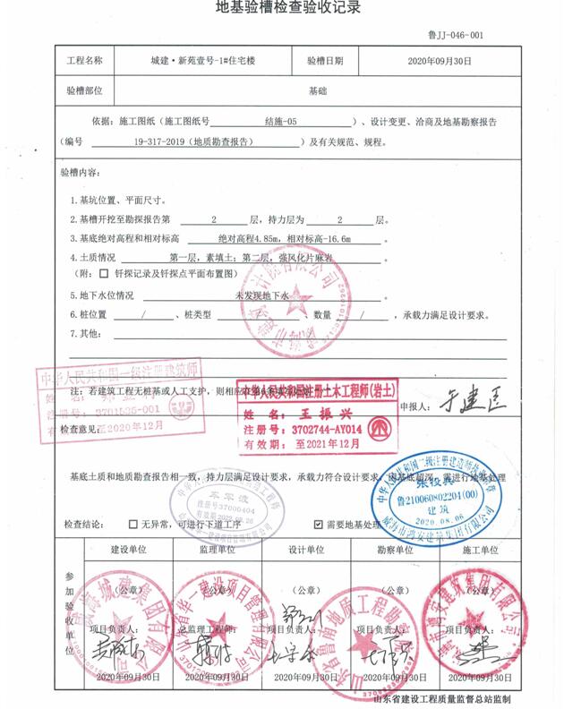勘察單位:山東省魯南地質工程勘察院 負責人:王振興