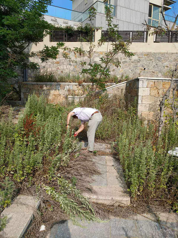 前幾天,物管中心去查看一處轉交過來的資產,一進院子,雜草叢生。唐建民一邊說著:“這哪像一戶人家。”一邊從車上拿出一只剪冬青的剪刀,就冒著烈日收拾起雜草來。